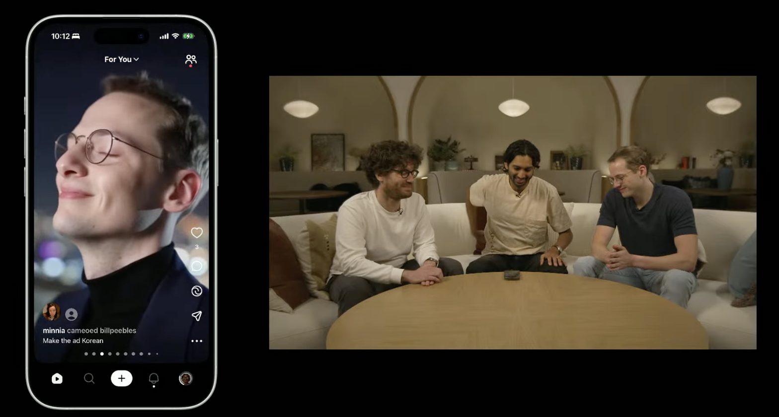 几个月前,OpenAI在Sora团队开始尝试“上传自己生成的视频”的功能,他们都玩得很开心。OpenAI称,这感觉就像是沟通方式的自然演变——从短信到表情符号,再到语音备忘录,再到现在的视频。