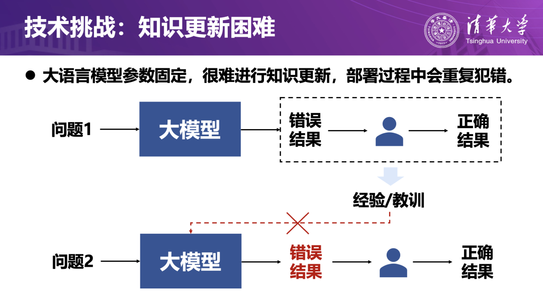 在实际部署中,大模型的参数基本是固定的,难以像传统机器学习那样通过再训练来更新知识。这意味着:当智能体遇到新问题时,即使曾在类似场景中犯过错误,也往往无法自动吸取教训,容易在后续任务中重复出错。